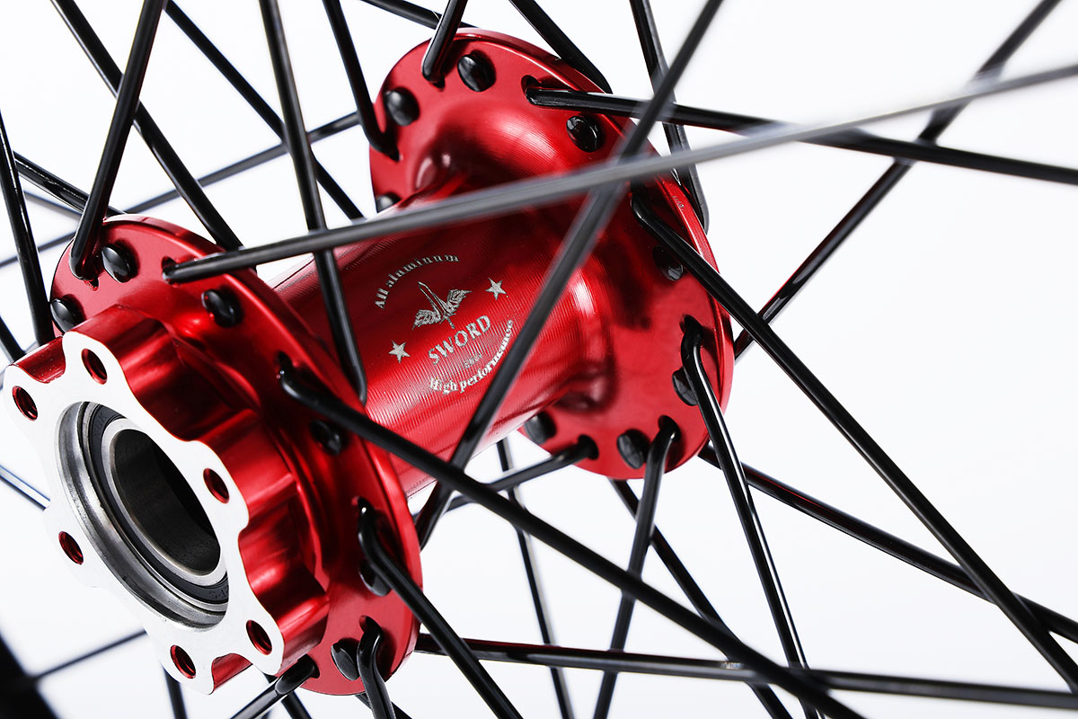 花鼓:材質(zhì):6061AL T6,前鼓芯:M20*12G*36H//后鼓芯:M15*12G*36H。鍛造花鼓
